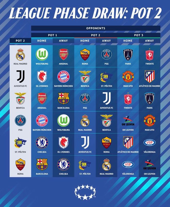 巴黎圣日耳曼女足:拜仁女足、沃尔夫斯堡女足、皇马女足、本菲卡女足、奥德赫维里女足、曼联女足