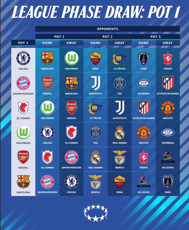 2526赛季女足欧冠抽签:阿森纳对决皇马,切尔西遭遇巴萨