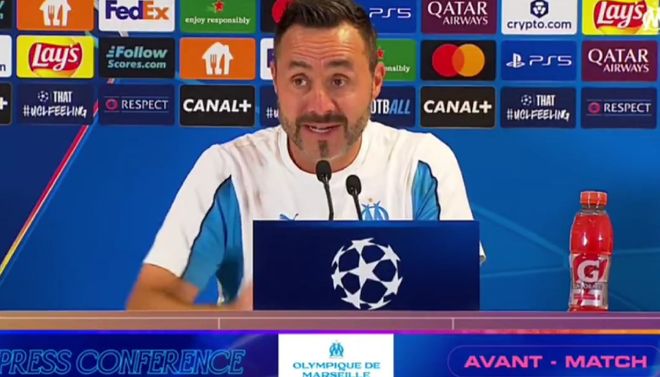 雷速体育9月29日宣 欧冠联赛阶段第2轮,马赛将坐镇主场迎战阿贾克斯。赛前,马赛主帅德泽尔比出席了新闻发布会。